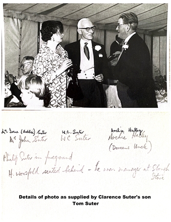By 1923, the Suters partnership was sufficiently established to contemplate expansion. Both Arthur and Frank Suter joined and the enlarged partnership purchased Carrick & Coles which had a large shop at Waterloo House in Uxbridge. Clarence's father also bought himself a new and much bigger family home at Kingsway on the corner of London Road and Hempson Avenue in Slough.